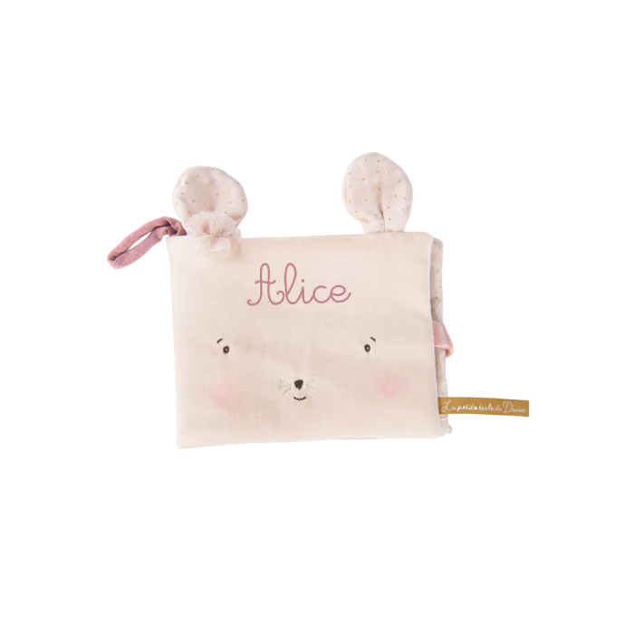 Album photo souris en velours éponge, avec ses deux petites oreilles ! Comprend 9 pages pour glisser ses photos, une fermeture velcro pour le fermer et un lien pour l'emmener partout. Peut être brodé au prénom de bébé. Fabriqué à partir de 50% de plastique recyclé.