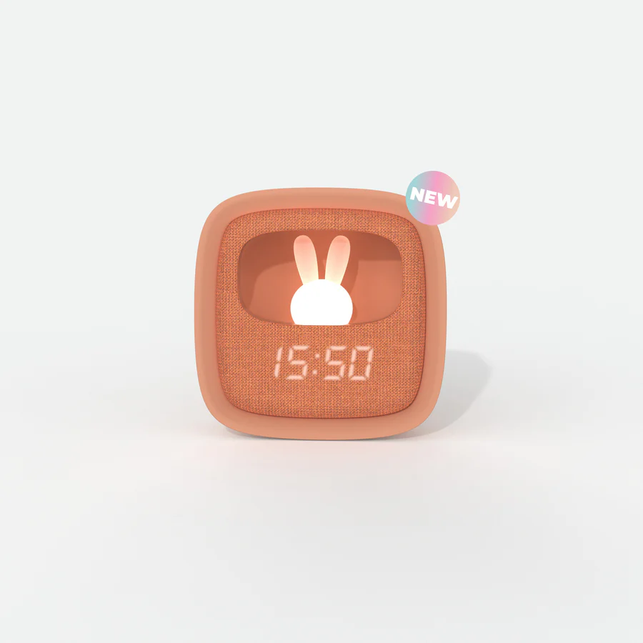 Ce réveil dispose d'une veilleuse lapin pour rassurer les plus petits. La luminosité de la veilleuse est facilement réglable via un bouton tactile.