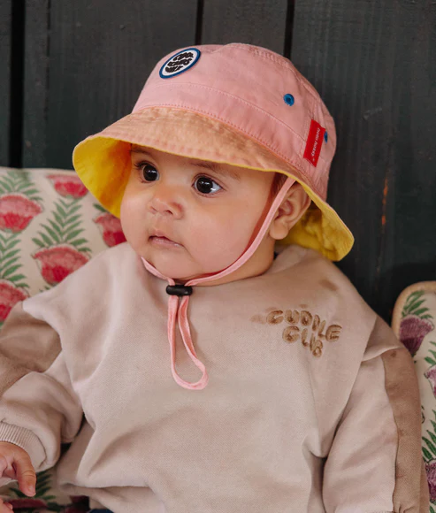 Le Bob pour bébés et enfants, Mini Rosita, est un bob rose Cool Kids Only. Taille bébé disponible : 3-9 mois. Cordon ajustable et de maintien sur toutes les tailles. Bob 100% coton biologique. À porter tout l'été, pendant les journées ensoleillées.