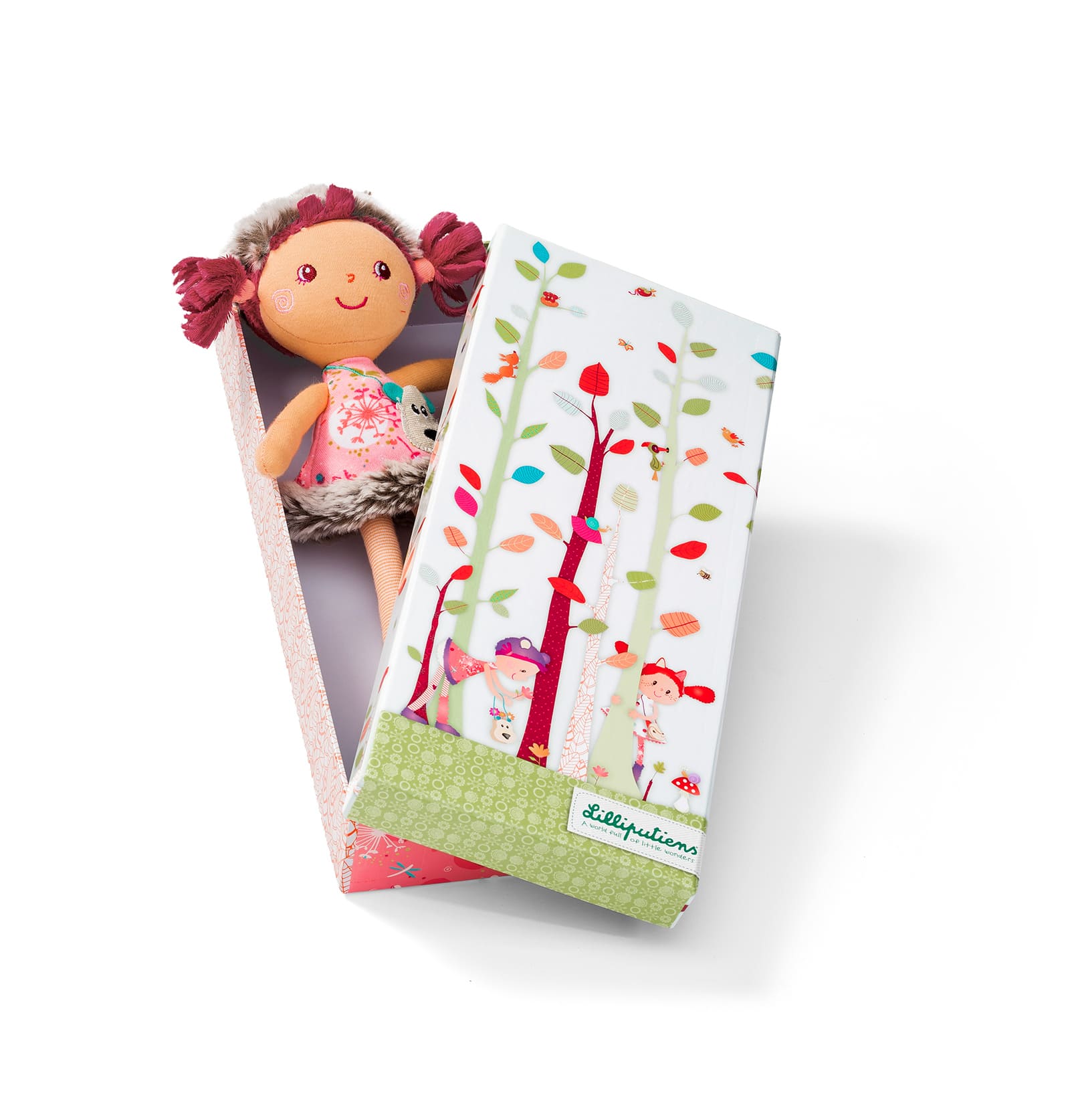 Présentée dans sa jolie boîte aux couleurs de la forêt, voici Césaria, petite poupée coquette au look d’oursonne. Munie de ses petites oreilles rondes et son sac à main doré, emmène-la avec toi en balade dans les sous-bois.