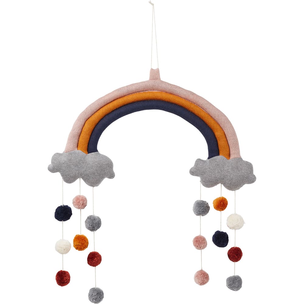 Le mobile Arc-en-ciel de Liewood associe un adorable arc-en-ciel en coton biologique à une pluie de pompons colorés. Un motif poétique et actuel qui plaîra autant aux parents qu’aux enfants ! Le mobile Arc-en-ciel Liewood se fixe en déco au mur ou au plafond. Il peut aussi être suspendu au-dessus du lit à l’aide d’un support de mobile.