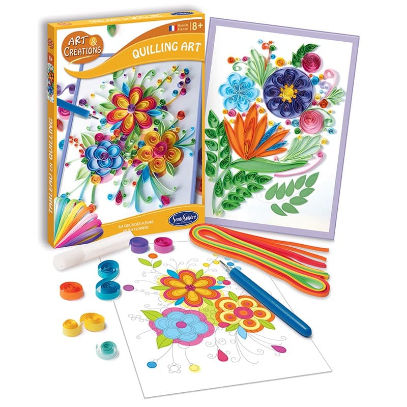Le Quilling est une activité manuelle qui permet de créer de véritables oeuvres d'art avec une technique originale consistant à enrouler de fines bandes de papier multicolore. Il suffira ensuite de déformer les différents rouleaux de papier obtenus puis d’utiliser le tube de colle pour les placer en suivant les lignes de l’illustration du coffret. Bande après bande, une magnifique composition, haute en couleurs, prendra vie !